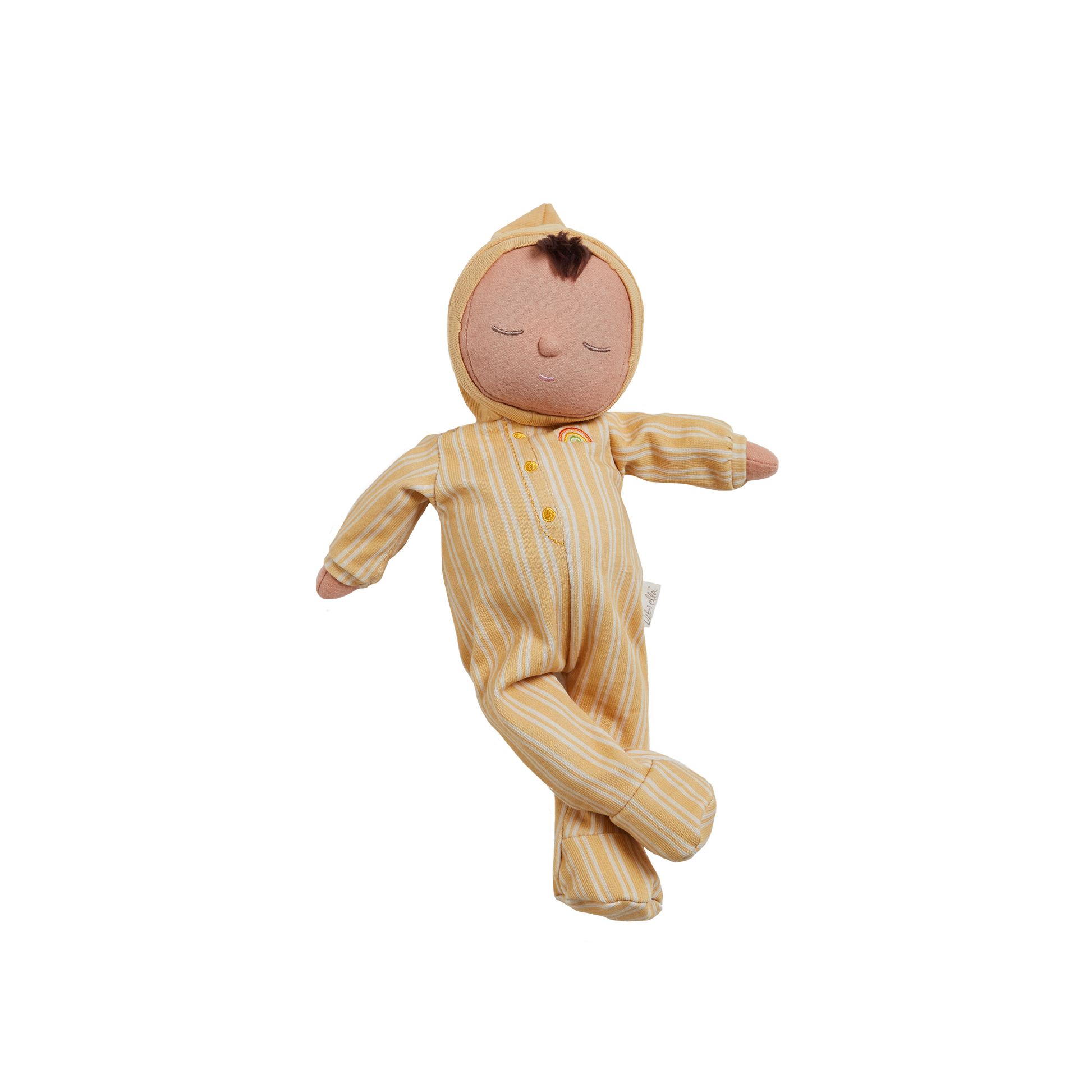 • Dozy Dinkums wear a non-removable cotton onesie with an embroidered rainbow on heart area.